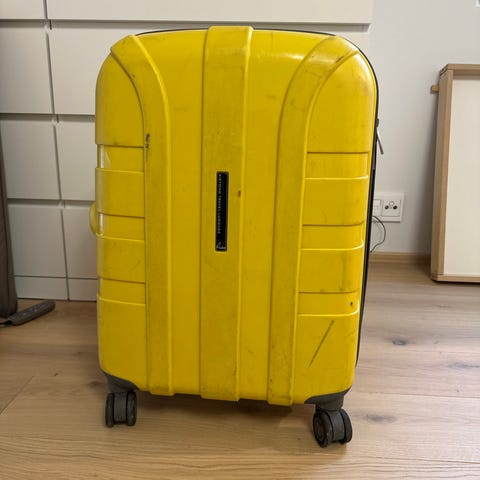 Hyväkuntoinen ja erittäin kestävä sekä kulutusta hyvin sietävä lentomatkalaukku myyntiin. Laukku on valmistettu tukevasta materiaalista, joka kestää hyvin käyttöä ja matkustamisen rasitusta.