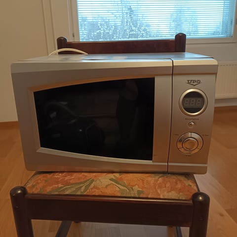 UPO mikroaaltouuni teräksen värisellä ulkokuorella. Laitteessa on etupaneelissa painikkeet ja säätönuppi ohjelmien ja tehon valintaan. Sisällä on lasinen pyörivä alusta ja valaistu valkoinen kammio. Soveltuu ruoan lämmittämiseen ja sulattamiseen kotikeittiössä.