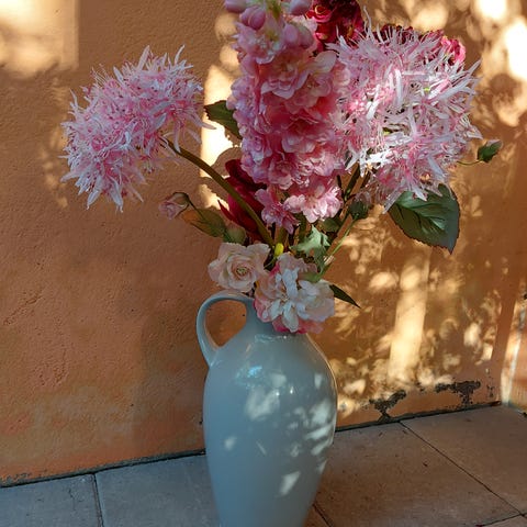 Kaksi isoa keraamista kannua/maljakkoa. Korkeus noin 31cm.