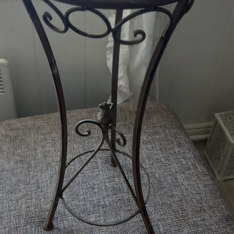 Puinen kukkapöytä.