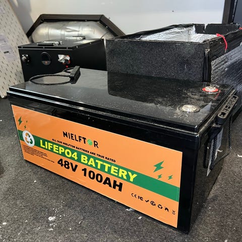 Myynnissä testattu ja toimivaksi todettu 48V-järjestelmiin sopiva LiFePO4-akusto. Nimellisjännite 51.2V (16S LFP) ja kapasiteetti 314Ah per paketti, eli energiaa noin 17 kWh per paketti, yht. 1256Ah noin 68kWh (68 000Wh). Maksimilataus 58.4V.