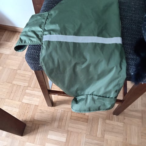 Sadetakki sirolle koiralle, selän pituus 30-32cm. Käyttämätön, edessä tarranauha