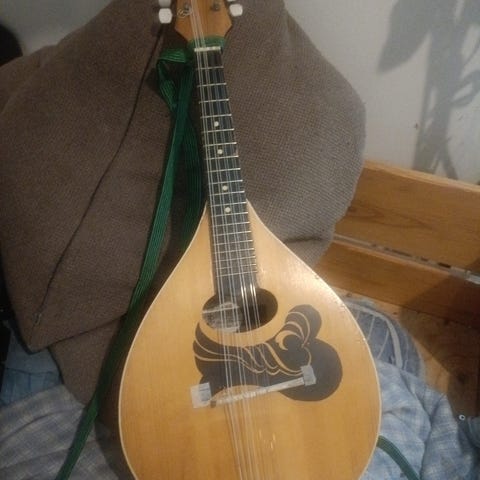 Tsekkiläinen siisti mandoliini, tarvitsee uuden yläsatulan (maksaa muutaman euron), muuten hyvässä kunnossa.