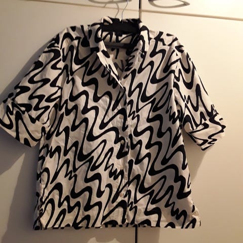 Laadukas Monkin pitkä paitamekko, koko XXS, mutta menee helposti S-kokisellekin. Mekossa on pitkät hihat, kaulus ja nappikiinnitys koko pituudelta. Vyötäröllä on irrotettava ja säädettävä vyö, jolla istuvuutta voi muokata, muuten suora malli. Kuosina on suuri, graafinen kirjava kuvio tummansinisellä pohjalla. Materiaali on 95% polyesteriä, jossa on 5% elastaania joustavuuden lisäämiseksi. Koko pituus n. 117cm, leveys vyötärön kohdalla n. 44cm. Käytetty kaksi kertaa.