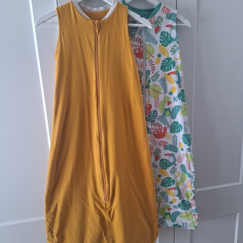 Hyväkuntoiset unipussit. Sopivat kesään ollen viileät. Vahvuus 0,5 tog. Vetoketjut myös alaosassa.
