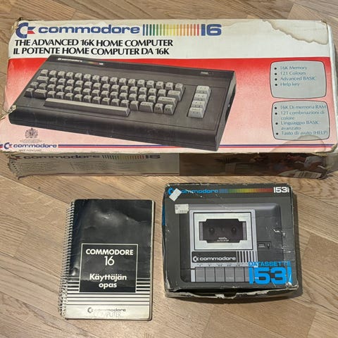 Commodore kasettiasema tietokoneelle. Laitteessa on kasettipesä, toisto-, pysäytys- ja tallennuspainikkeet sekä liitäntäjohto tietokoneeseen. Soveltuu Commodore-tietokoneiden ohjelmien ja pelien lataamiseen nauhalta.