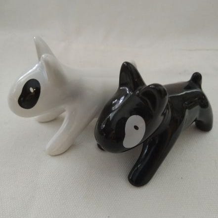 Sirottimet suola ,pippuri ,musta,valkoinen koira koko 7 cm x 10 cm.