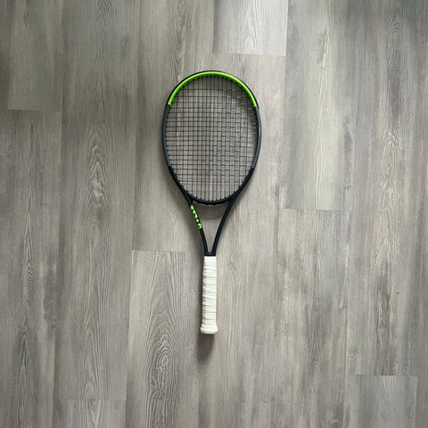 Myynnissä Wilson Blade tennismaila. Kulumaa ja maalinlohkeamia löytyy joten alhaisempi hinta tällä kertaa. Tuskin kuitenkaan peliin vaikuttaa joten jätetään tinkimiset väliin.