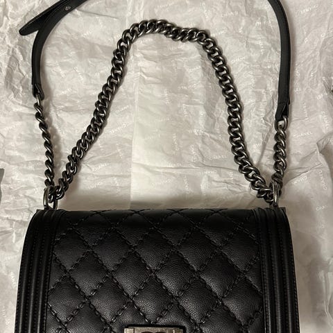 Tämä ikoninen Chanel Boy Old Medium on valmistettu beigestä vasikannahasta ja viimeistelty ruteniumin sävyisillä metalliosilla! Kaunis beige sävy tekee laukusta ajattoman ja helposti yhdisteltävän niin arkeen kuin juhlaan.