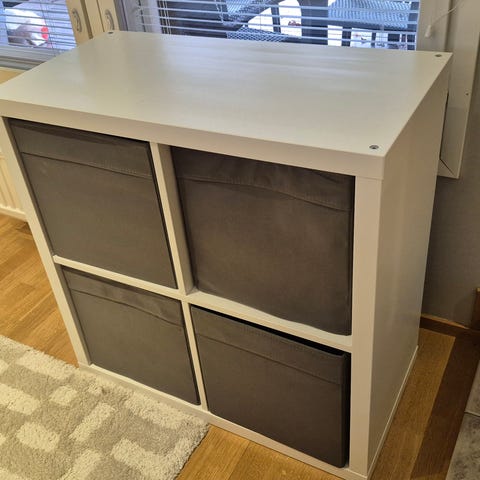 Hyväkuntoinen Kallax lipasto (kuvassa näkyy yksi pieni jälki) mukana kaksi laatikkoa. Huom. myyn myös toista vastaavaa Torissa. Tarjoa yhteishintaa :)