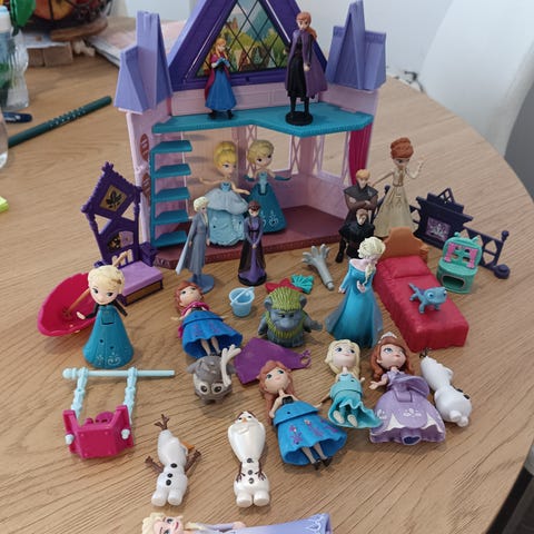 Kuvissa näkyvät frozen lelut yhteishintaan 35€. Linnasta puuttuu yksi seinäpahvi (kuva 2).