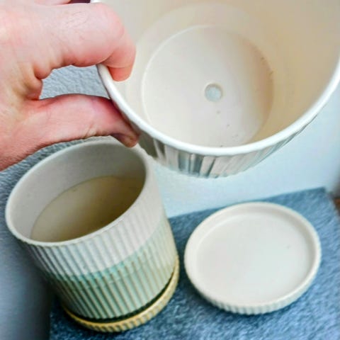 IKEA ruukku raidallinen keramiikka oranssi-punainen
