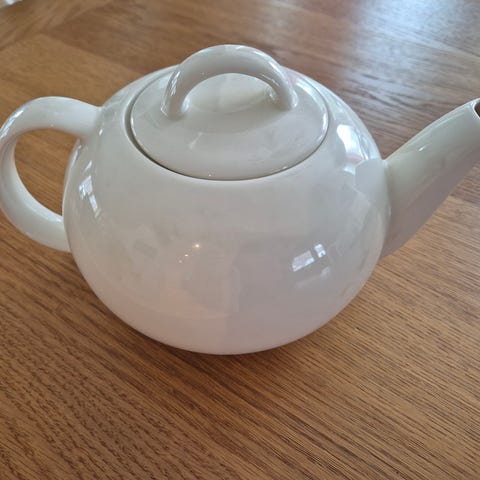 Arabia teekannu valkoista posliinia. Kannussa on irrotettava ruostumattomasta teräksestä valmistettu siivilä irtoteelle sekä posliininen kansi. Käyttämätön, ei jälkiä.