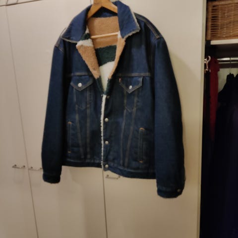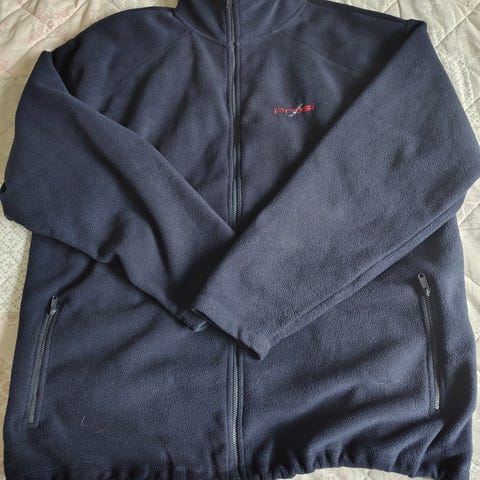 Camel blend vintage miesten kääntötakki, koko (arvio) XL. Sininen fleece-materiaali, jossa tikattu päällikerros ja vetoketjukiinnitys. Takissa pystykaulus ja resorit hihoissa.