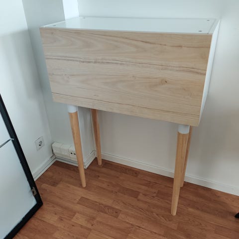 Koulupöytä jossa hyllyt...pieni lohkeama ei vaikuta käyttöön eikä näy koska pöydän alla..sama pöytä löytyy jollyroomin sivuilta sieltä voi katsoa mitat..