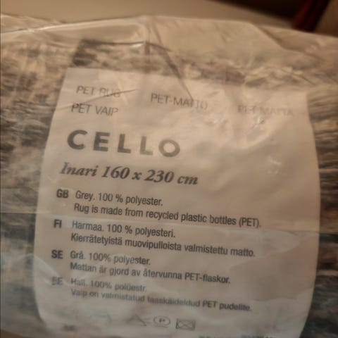 Paketti avattu ja mattoa vain sovitettu. Tilattu väärän kokoinen, jonka takia myynnissä. 160x240 cm. 100% polyesteria. Nouto Turusta.