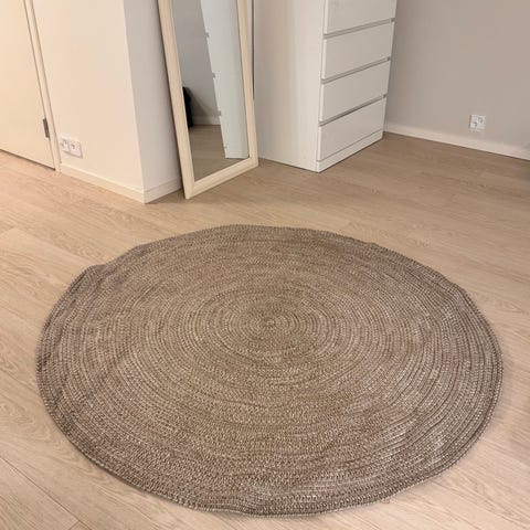 Pyöreä matto olisikohan Vallila merkkinen. Hakaisija 100cm.