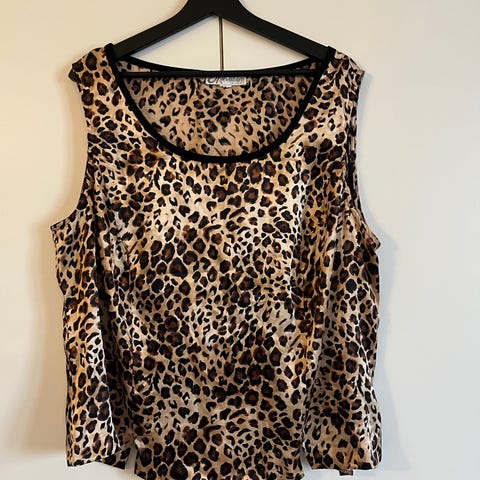 Arkeen ja juhlaan sopiva Morgan De Toi leopardikuosinen pusero kokoa L. Vartalo-osa joustaa, hihat läpikuultavaa sifonkia jossa kullanväristä lankaa. Olka-helma noin 54cm, kai-kai venyttämättä noin 50cm, joustaa noin 66cm asti. Vyötäröllä kullanvärinen koriste. Erinomainen kunto.