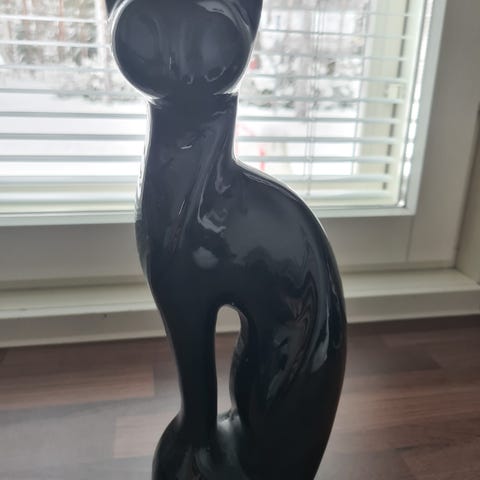 Valkoisesta keramiikasta valmistettu joutsenten muotoinen kukka-astia, jossa siniset tekokukat ja kullanvärisiä yksityiskohtia sekä lehtiä. Astia on ontto sisältä ja tarkoitettu kukka-asetelmalle tai koristekäyttöön. Kuvissa näkyy tummentumaa keramiikan reunassa viimeinen kuva. Korkeus 16 cm, leveys 14 cm