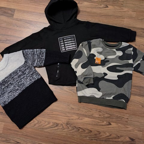 Poikien vaatepaketti koko 98. Kolmet housut, pitkähihainen ja t-paita