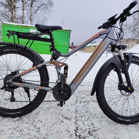 Samsung akku. Yhdellä latauksella pääsee reitin haastavuudesta riippuen n 40km.