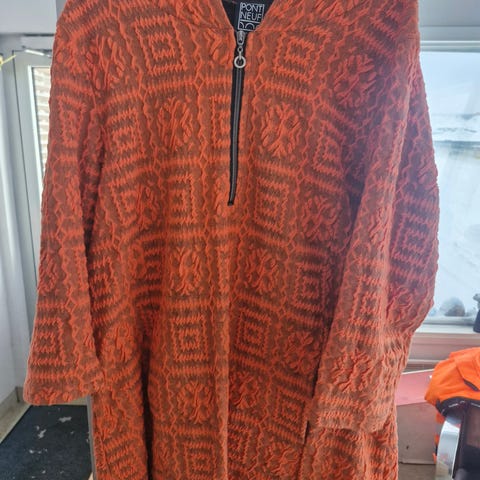 Stockmannin Noom-malliston vihreä tunika, sopii myös lyhyeksi mekoksi. Korkea, väljä poolokaulus. Alas laskeutuvat olkasaumat. Jäänyt käytännössä käyttämättömäksi, kokeiltu kaksi kertaa päälle. Koen, että on liian lämmin minulle.