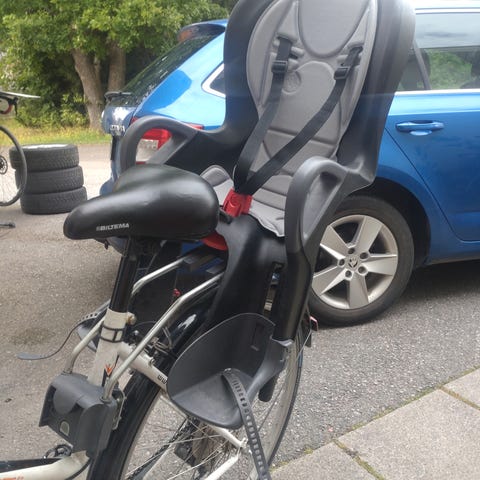 Polisport Boodie lasten pyöränistuin 22". Väri musta/punainen. Istuimessa on selkänojallinen kuori, turvavyöt ja jalkatuet. Kiinnitys runkoon (frame mounting). Valmistettu muovista, istuinosassa pehmusteet. Nouda Helsingistä.