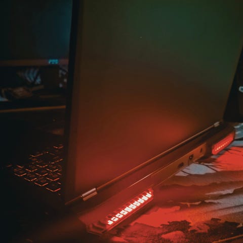 Mukaan tulee itse läppäri sekä virtajohto. Halutessaan saa myös pelihiiren.