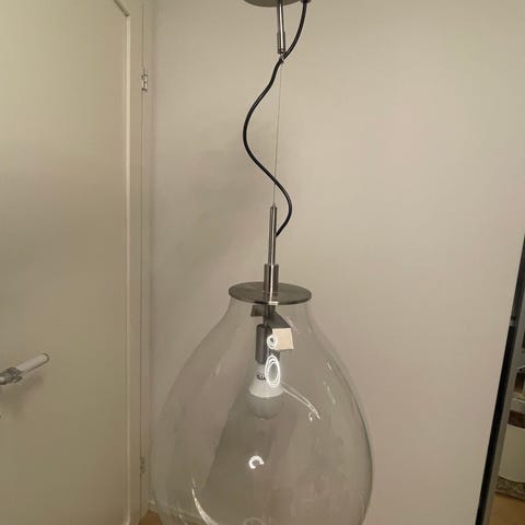 Arkkitehti Elsi Borgin suunnittelema kattovalaisin lasia. Turkoosinvärinen sisäosa sekä kirkas ulko-osa, jonka halkaisija on n. 60 cm. Suunniteltu alun perin yksityislahjana arkkitehti Eelis Hyväriselle. Minulle valaisimen myyneeltä henkilöltä selvitys valaisimen alkuperästä ja historiasta.