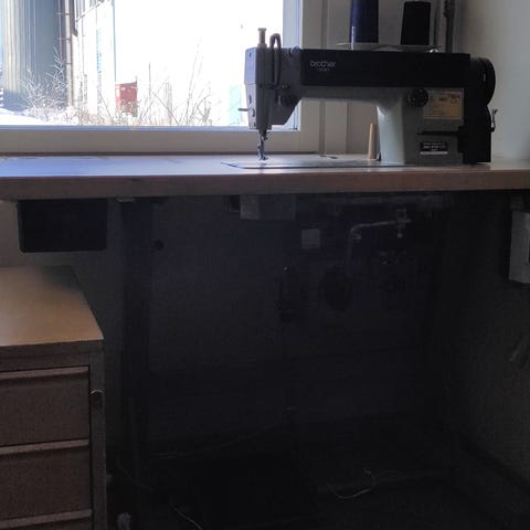 Käytetty, mutta toimiva. Ennen käyttöönottoa huollettava.Toimii voimavirralla ja tarvitsee paineilmaa paininjalan nostoon ja langankatkaisuun.