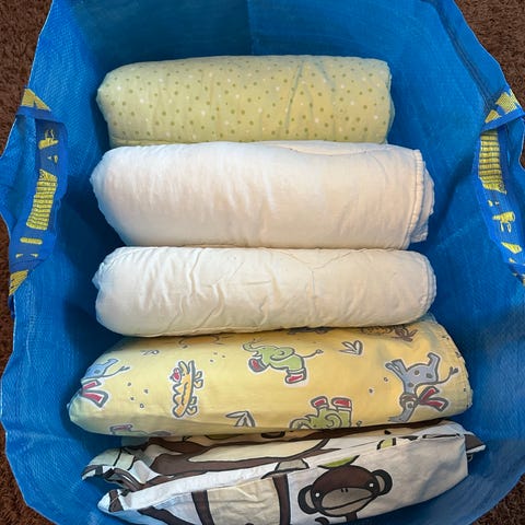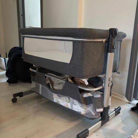 Annetaan vauvan pinnasängyn reunapehmuste. Nouto Paatsamatieltä Etelä-Haagasta.