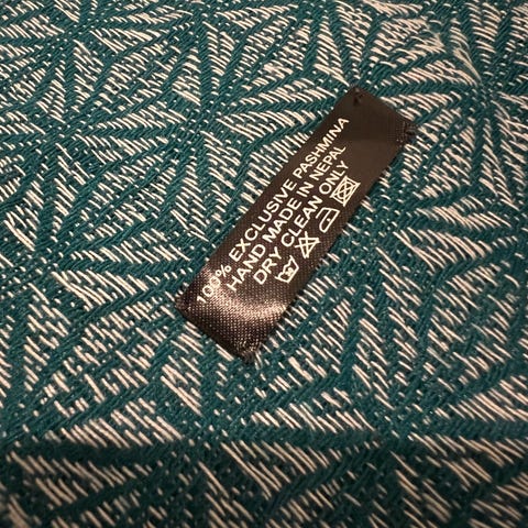 Nepalilaisesta kaupasta ostettu aito iso beige kashmirshaali. Koko noin 90x187cm.
