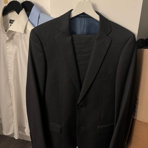 Jack & Jones PREMIUM musta puku 48 + valkoinen kauluspaita S – käytetty kerran