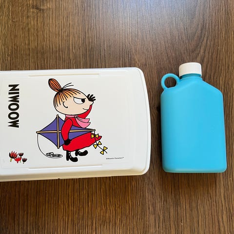 Muumi-tarjotin, jossa kukkakuvio ja Muumi-hahmoja. Tarjotin ei ole täyskokoinen eli vähän pienempää mallia. Mahtuu suurin piirtein yksi pieni lautanen ja lasi. Saa tarjoiltua vaikkapa aamu- ja välipalat. Materiaalina kova, sileäpintainen levy. Ollut vähällä käytöllä.