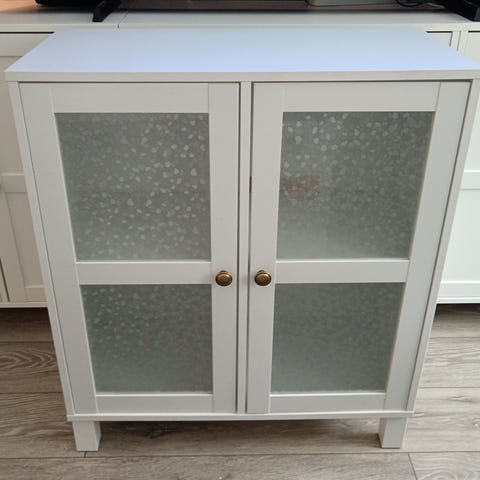 Aivan uudenveroiset, ehjät ja siistit. Myös vitriiniosiin on jalat, korkeus ilman jalkoja 71cm.
