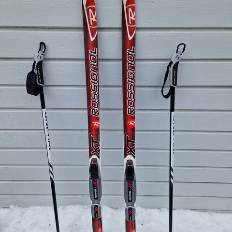 Sukset Peltonen, kerran hiihdetty, 140cm. Sauvat myös.