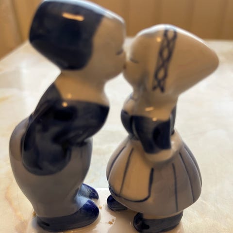 Posliinifiguurit, jotka esittävät maalaispariskuntaa. Kaksi erillistä koriste-esinettä: naishahmo hameessa ja huivissa sekä mieshahmo takissa ja hatussa. Monivärinen lasite, vaaleat ja pastellisävyt. Sopivat sisustukseen esimerkiksi hyllylle tai vitriiniin asetettaviksi koristeiksi. Materiaali posliinia tai vastaavaa keramiikkaa.