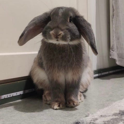 Pian 3v täyttävä leikkaamaton uros etsii allergian vuoksi uutta kotia. Rodusta ei 100% varmuutta, hänet kaupattiin kääpiöluppana, mutta herra painaa 4,5kg. Hän on kiltti ja pitää rapsutuksista. Viihtyy seurassa mutta ajoittain myös omissa oloissaan. Hoitotoimenpiteet onnistuvat hyvin. Sisäsiisti, asunut pääasiassa vapaana sisällä, yöt viettänyt häkissä. Mukaan saa tarvittaessa häkin, kantokopan, ruokakupit, vessan, heinätelineen, 2 harjaa, valjaat, kynsisakset, loput heinät, kuivaruuat ja puupelletit vessaan. Lisätietoja saa kysymällä