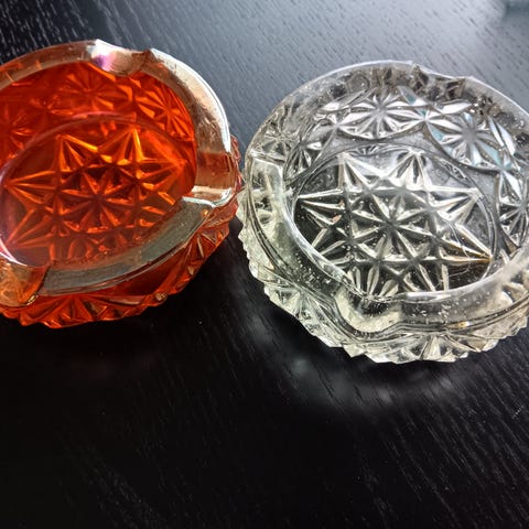 Malja, 3 vaasia, tuhkakuppi, sokerikko ja kermakko. Koko setti 150 e/tarjous.