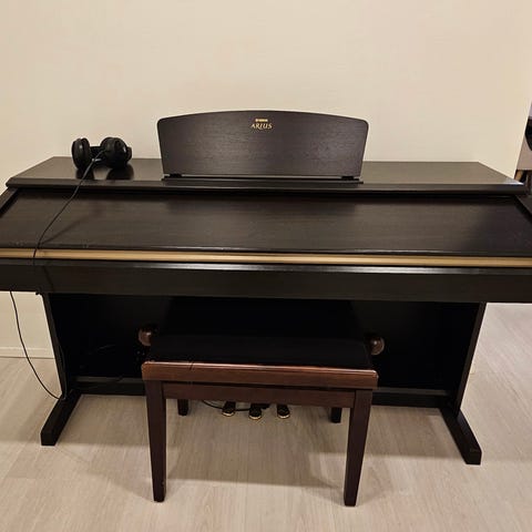Siistikuntoinen näppärän kokoinen Yamahan sähköpiano. Toimii moitteettomasti, pientä käytönjälkeä pianon nurkassa, näkyy lähikuvassa. Sopii hyvin pieniin tiloihin ja kerrostaloasuntoon.