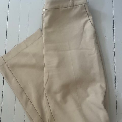 Beiget/harmaat suoralahkeiset housut.