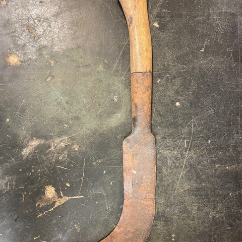 Vanha puukahvainen vesuri. Terä taittunut. Lähetys onnistuu.