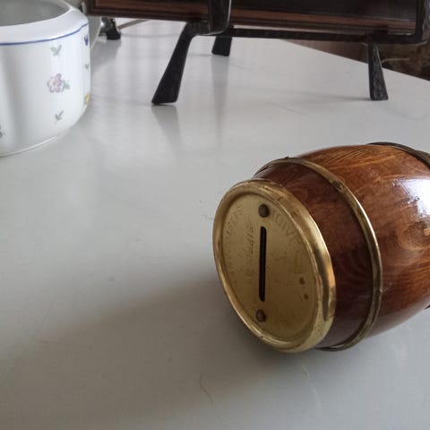 Korkeus noin 7,5 cm ja leveys yläreunassa noin 8,5 cm.