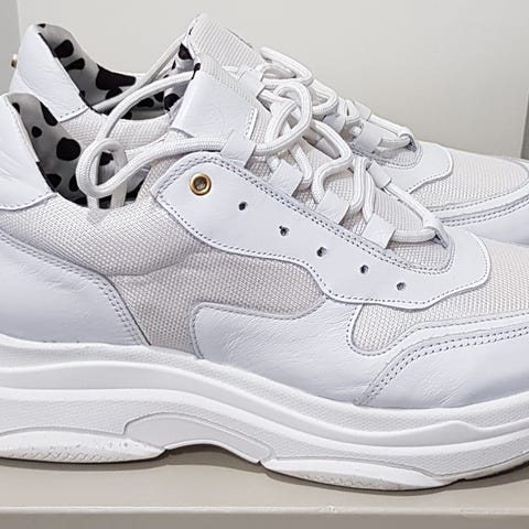 Stella McCartney lenkkarit, koko 40. Monivärinen malli, jossa oransseja, mustia ja vaaleita yksityiskohtia. Nauhakiinnitys ja joustava päällinen. Sopivat arkikäyttöön ja kevyeen liikuntaan. Nouda Helsingistä.