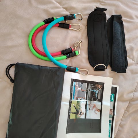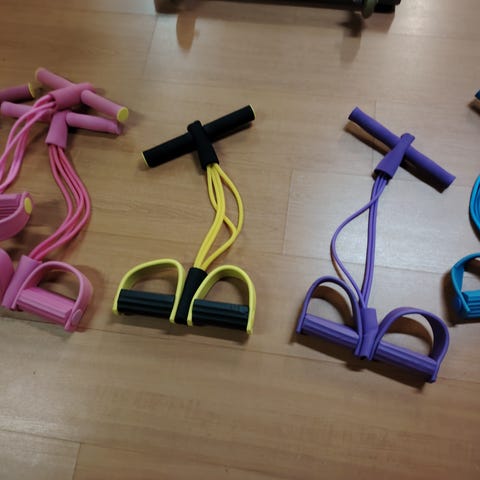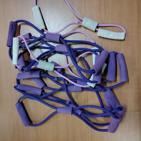 Kuminauha treenivastus kotiharjoitteluun. Soveltuu ylä- ja alavartalon lihaskuntoharjoitteluun sekä venyttelyyn. Nauha voidaan kiinnittää esimerkiksi oven väliin tai pitää käsissä eri liikkeissä.