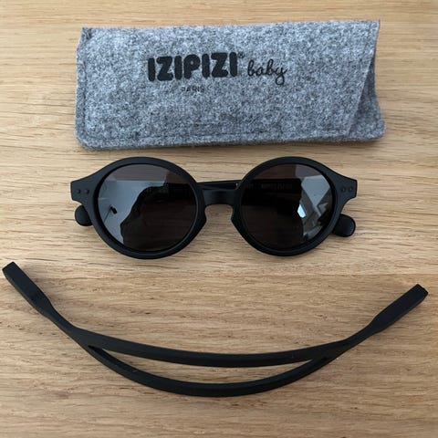 Izipizi Sun Kids aurinkolasit mustana. Sopii 1-3-vuotiaille. Mukana huopakotelo ja pään taakse tuleva hihna.