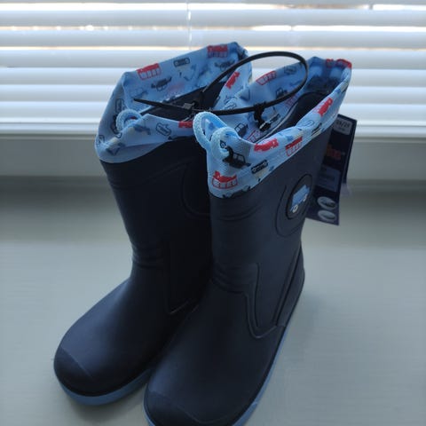 Käyttämättömät söpot pilkulliset kumisaappaat koossa 28, sisäpohjallinen 18,5 cm. Saappaissa on kätevät kahvat helpottamassa pukemista. Sopivat siroon/ kapeahkoon jalkaan sillä eivät ole leveälestiset.