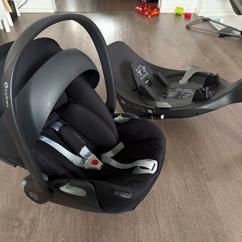 Kahdella lapsella ollut hyväkuntoinen Cybex Cloud Z2 turvakaukalo ja 360 kääntyvä Cybex Base Z2 isofix-telakka.