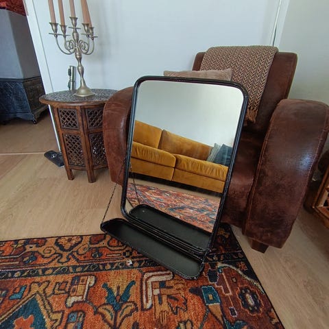 Iskusta ostettu Incado peili, ulkomitat 62X102cm ja peilin koko 40X80cm. Musta kehys. Jämäkät kiinnityskannakkeet. Ovh 170e