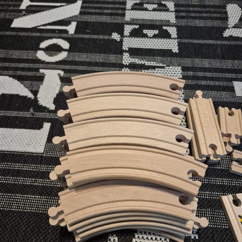BRIO puinen junaradan lisäosapaketti, jossa useita erilaisia suoria, kaarevia ja risteäviä ratapaloja. Osat on valmistettu vaaleasta puusta ja ne sopivat BRIOn puisiin junaratoihin. Soveltuu lasten leikkeihin junaratojen laajentamiseen ja muokkaamiseen erilaisiksi radoiksi. Myydään kappaleittain, 0,4 e/kpl, joten 10 kpl= 4 €